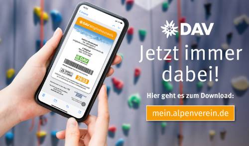 Für Neueinsteiger*in: Frisch beim DAV angemeldet? Herzlich willkommen! Etwa drei Wochen nach deinem Beitritt kannst du deinen digitalen Ausweis abrufen. Ab dem 1. Februar eines jeden Jahres gibt’s den Ausweis für das neue Mitgliedsjahr.