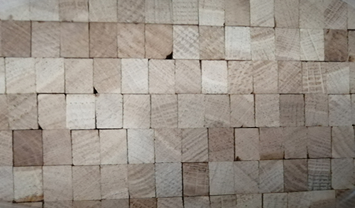 Paletten mit Industrieparkettboden stehen zum Verlegen bereit. Vorab werden die Böden noch geglättet und behandelt.