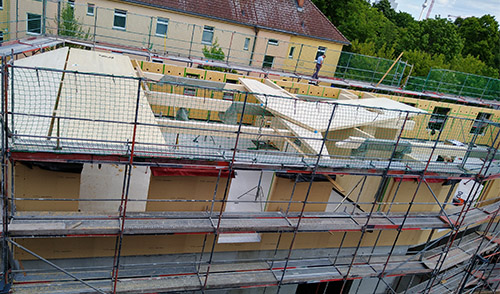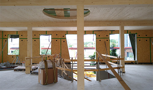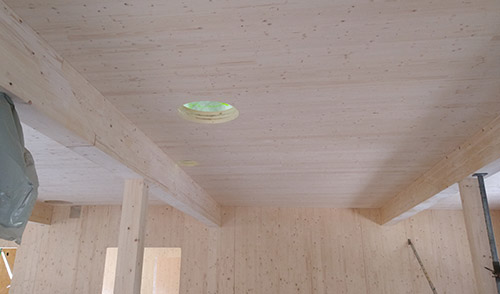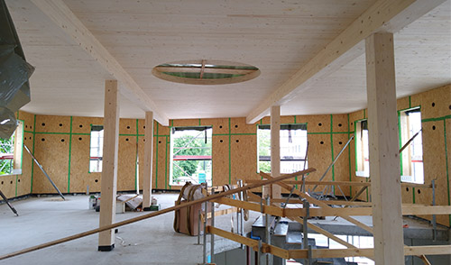 Heute präsentieren wir Euch an dieser Stelle eine besondere Premiere. Zum ersten Mal wechseln wir die Perspektive von der Außen- zur Innenansicht. Unser Neubau hat mittlerweile fast die finale Höhe erreicht. Die Holzbaufirma hat mit dem Dachaufbau begonnen.