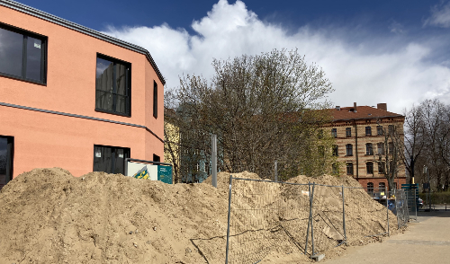 Vor dem Vereinszentrum liegen momentan noch riesige Sandberge. Nein, wir wollen hier keine neuen alpinen Gipfel für Berlin schaffen. Es ist der Aushub von der Außenanlage, der aber in der nächsten Woche abtransportiert wird.