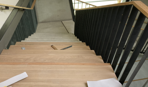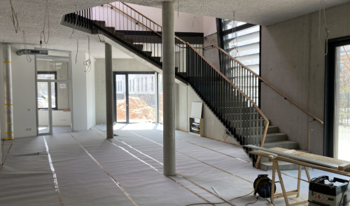 Auf einigen Treppenstufen fehlen noch die Holzdielen. Noch kann man sich kaum vorstellen, dass alles bis zum Umzug wirklich fertig wird.