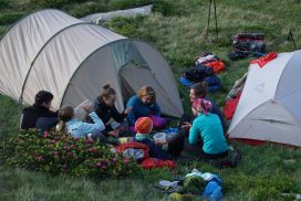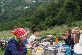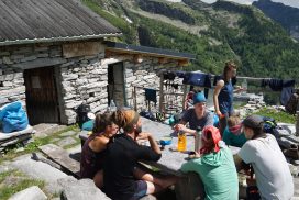 Wir trafen uns am 27. Juni 2020 am Südkreuz und starteten am frühen Abend unsere Autofahrt. Am nächsten Morgen kamen wir am Lago Maggiore in Locarno an. Wir frühstückten und genossen die morgendliche Einsamkeit im und am See. Anschließend fuhren wir, mit einem weiteren Badestopp in der Verzasca, bis nach Brione. Nachdem wir den Mietwagen abstellten, starteten wir am Nachmittag in unsere Mehrtagestour. Nach einem steilen und anstrengenden ersten Aufstieg, an dem wir vollkommen übermüdet bereits 1200 Höhenmeter zurücklegten, zelteten wir unterhalb des Lago del Starlaresc. Unser zweiter Tag endete unterhalb des Passo Dei Due Laghi. An diesem Tag hatten wir stark mit der intensiven Sonne und dem mangelnden Wasser zu kämpfen, sodass wir die Gruppe am Schlussanstieg teilten und mehrere Teilnehmende vorausliefen, um das Camp aufzubauen und mit dem Kochen zu beginnen. Der darauffolgende Tag begann für uns früh morgens. Wir legten zwar nicht viel Strecke zurück, genossen aber eine Badepause und stellten uns einer technisch anspruchsvollen Geröllscharte, die alle gut meisterten. Am nächsten Tag legten wir 8 Kilometer zurück, stiegen eine Kletterpassage hinauf und schliefen im Refugio Sambuco, wo wir den Abend gemeinsam als Gruppe mit Kartenspielen ausklingen ließen. Der nächste Tag wurde zum Gipfeltag, denn wir bestiegen den Monte Zucchero. Unterwegs bestaunten wir Ziegen, Schneefelder und die weite Sicht der Alpen. Auf dem Rückweg badeten wir in einer Gumpe. Wir campierten ein Stück weit entfernt des Refugios. Der folgende Tag stellte sich streckenbedingt und wettertechnisch als eine Herausforderung dar. Wir stiegen ein Stück weit ins Val Osura ab und machten einen Abstecher auf einen Grat, um zum letzten Mal die Aussicht zu genießen. Auf dem Rückweg weiter ins Tal überraschte uns eines der berühmt-berüchtigten sommerlichen Alpengewitter. Wir erreichen klitschnass nach 8 km das Capanna Osola. Es starteten mehrere Trocknungsaktionen. Diese brachten bis zum nächsten Tag jedoch nicht viel. An unserem letzten Tourentag führte uns der Weg durch Wald und Wiesen zurück zum Auto. Wir fuhren nach einer Mahlzeit und einem Bad in der Versasca los Richtung Berlin, wo wir spät in der Nacht ankamen.