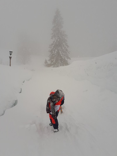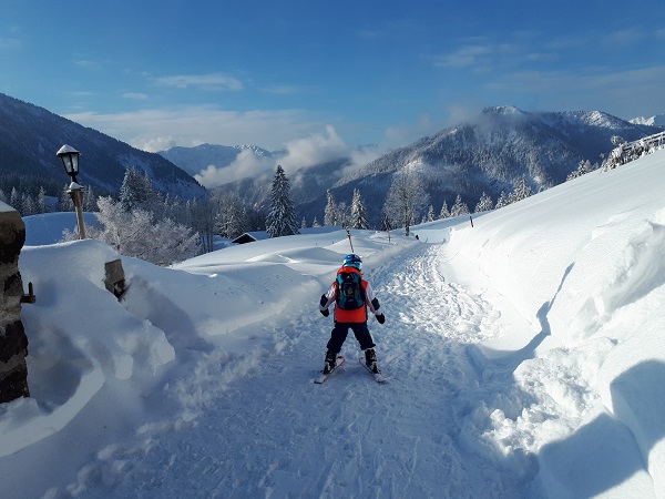 Die Straße nach Bayrischzell wurde erst Mitte der Woche wieder geöffnet, glücklicherweise waren Pisten und Skischule auch ohne Ski-Bus gut erreichbar – und wir wurden für den kleinen Fußmarsch mit angenehm leeren Pisten belohnt. Erst am Ende der Woche bildeten sich auch mal kleine Schlangen am Lift. Nur für die Langläufer hieß es entweder warten, bis der Bus wieder fuhr, oder sich mit Schneeschuhen auf den Weg zu den Loipen machen. Am Ende kamen aber auch diese auf ihre Kosten.