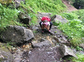 Ungefähr auf der Hälfte des Aufstiegs liegt die Sulzenaualm mitten in einer schönen Almlandschaft. Eine nagelneue Brücke und riesige Schuttlawinen zeugten von den zerstörerischen Kräften des Wassers, die im Vorjahr gewütet hatten. Nach einem warmen Marillenkuchen ging es weiter, über zahlreiche Kehren, über Wurzeln und Steine springend nach oben. Endlich auf der Sulzenauhütte, wurden wir herzlich empfangen und schlugen unser Lager im Nebengebäude auf.