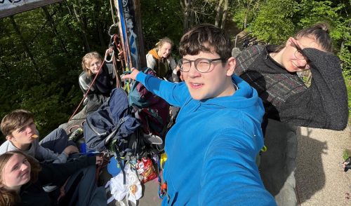Aufstehen, schrubben, putzen, fegen, packen. Aber das wird durch einen schönen Spaziergang zum See entschädigt. Die ganz harten schwimmen sogar! Glücklich setzen wir uns in die Autos und machen uns auf den Heimweg. Plötzlich bemerken wir, dass wir uns die ganze Fahrt viel zu gut benommen haben. Das können wir nicht so stehen lassen. Was sollen unsere Eltern von uns denken? Kurzerhand duschen wir versehentlich unsere Fahrerin beim rückwärts Einparken vor dem Kletterzentrum. Das wäre geschafft! Puh!