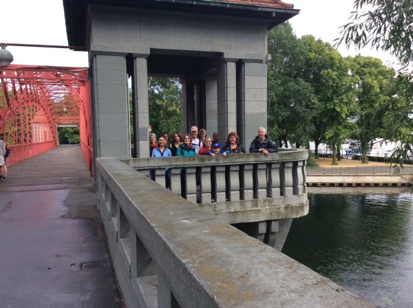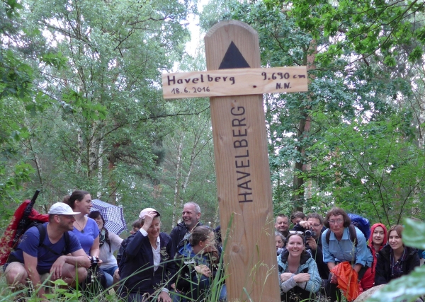 Dann ging es quer durch den Grunewald. An einem idyllischen kleinen See machten wir eine längere Pause. Wir blickten dann auf den Pechsee, der langsam verlandet. Auf dem Havelberg errichteten wir ein Gipfelkreuz, unter das wir uns alle ducken konnten (siehe Fotodokument). Wir genossen den Blick vom Havelhöhenweg auf Lindwerder und bewunderten die riesige, uralte Eiche an der DLRG-Station „Großes Fenster“. Sie ist wohl die dickste und älteste Eiche im Grunewald. Am Abend erreichten wir den schönsten Blick über die Havel und dann nach ca.17 km den S-Bahnhof Nikolasee.